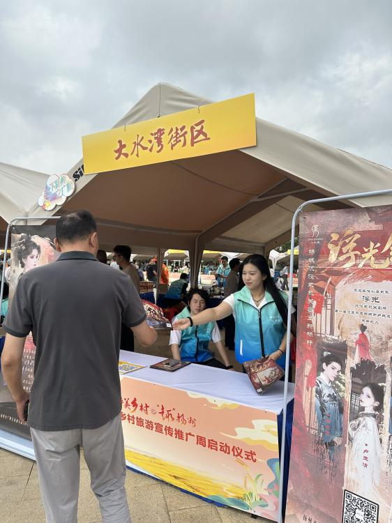 在活動(dòng)現(xiàn)場(chǎng),街區(qū)通過(guò)精美的展板和彩頁(yè)展示了唐朝詭事錄·西行”國(guó)潮沉浸劇場(chǎng)、“浮光機(jī)關(guān)劇場(chǎng)”及“對(duì)影古風(fēng)酒館”等街區(qū)新開發(fā)的文旅新場(chǎng)景項(xiàng)目,也宣傳推介了包括淮揚(yáng)菜博物館、鹽宗廟、精品淮揚(yáng)菜餐飲等在內(nèi)的街區(qū)傳統(tǒng)項(xiàng)目。通過(guò)視頻、展板及工作人員的介紹,讓活動(dòng)參與者更加直觀地感受到了大水灣街區(qū)的魅力。