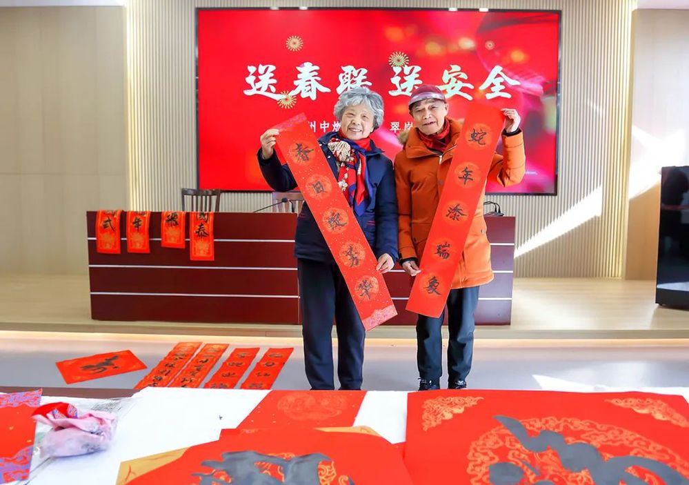 蛇年添瑞象,春日綻芳華。社區(qū)86歲的黃老先生和老伴早早來到了現(xiàn)場,即興書寫了一幅春聯(lián)。老伴湯女士說,手寫的春聯(lián)有溫度、接地氣,特別有過年的氣氛,還學(xué)到了實用的燃氣安全知識,感謝中燃公司送來的溫暖祝福。