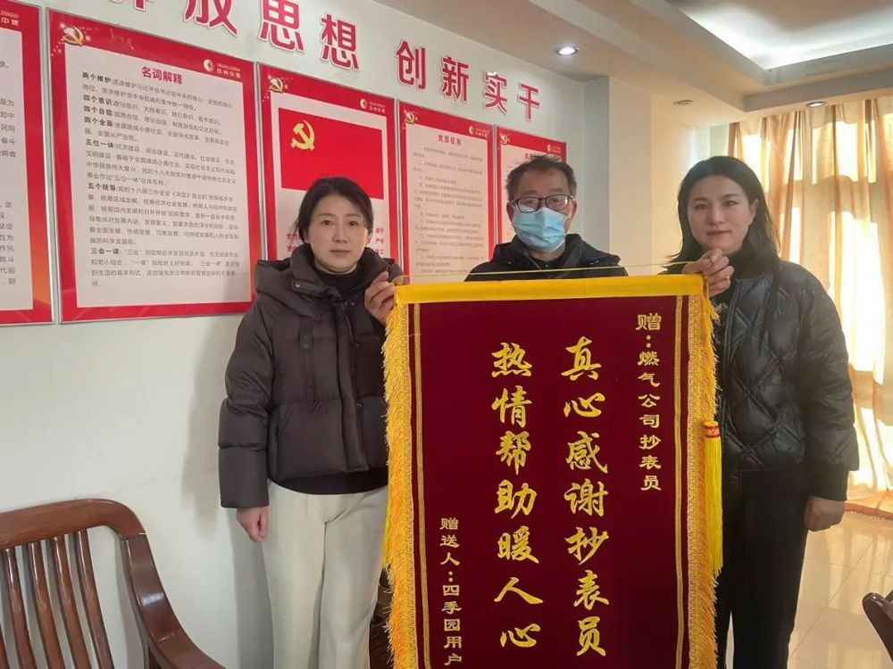2月24日,揚(yáng)州市區(qū)四季園小區(qū)天然氣用戶睢先生將一面印有“真心感謝抄表員 熱情幫助暖人心”的錦旗送到了揚(yáng)州中燃公司,對(duì)客服部抄表員郭蘭及時(shí)救助獨(dú)居老人的善行義舉表示衷心感謝。