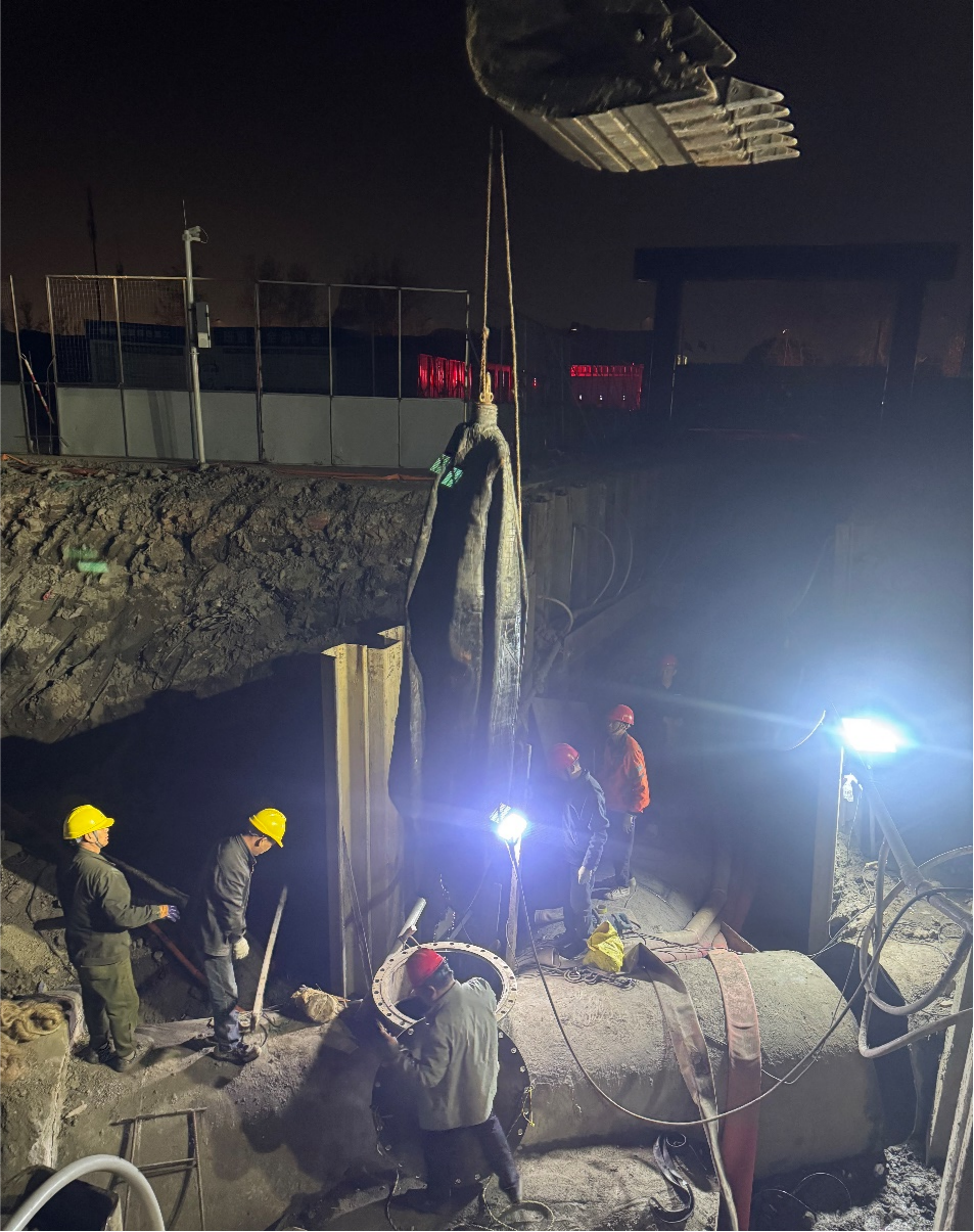 作為保障汛期排水系統(tǒng)穩(wěn)定的核心環(huán)節(jié),施工需在不停產(chǎn)、不影響污水處理的前提下完成導流切換,同時涉及高水位作業(yè)、夜間施工及生態(tài)保護等要求。在此情況下,公司高度重視,聯(lián)合設計單位、上善公司及市政管網(wǎng)公司成立專項工作組,召開多輪技術(shù)論證會,創(chuàng)新制定了“分段導流+動態(tài)調(diào)控+雙保險封堵”的施工方案,并調(diào)集精銳施工力量,提前部署應急物資,組織專業(yè)潛水團隊,實施對管道流量、水質(zhì)及周邊環(huán)境進行無間斷監(jiān)控,以“分鐘”為單位倒排工期,確保施工全程安全可控。