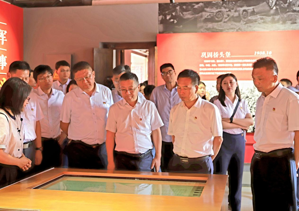 紀(jì)念館內(nèi),泛黃的史料呈現(xiàn)著斑駁的抗戰(zhàn)圖景。跟隨講解員的細(xì)致講述,大家詳細(xì)了解了陳毅、粟裕率領(lǐng)新四軍在此建立蘇北指揮部的歷史脈絡(luò),系統(tǒng)學(xué)習(xí)了新四軍在蘇北抗戰(zhàn)歷程與革命事跡。觀過(guò)程中,黨員們不時(shí)駐足于作戰(zhàn)地圖前,凝視著戰(zhàn)士用過(guò)的槍械、村民支援的布鞋,在以少勝多、軍民同心的史料紀(jì)實(shí)中,深切感悟“聽黨指揮、敢打必勝”的鐵軍精神。