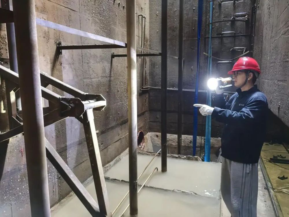 為確保搶修工作高效推進,應對任何突發(fā)狀況,廠部所有管理人員,共同組成了一支特殊的“管理保障班”,他們實行排班制,確保24小時均有兩名管理人員在現場指揮協(xié)調,生技、設備、機修、安全等多專業(yè)人員“到點交接、責任不斷檔”。在搶修最關鍵的階段,部分管理人員和作業(yè)人員連續(xù)作戰(zhàn)48小時未曾合眼,始終堅守在沉淀池底部、進出水閥門的最前沿,他們的身影成為了現場最令人安心的力量。